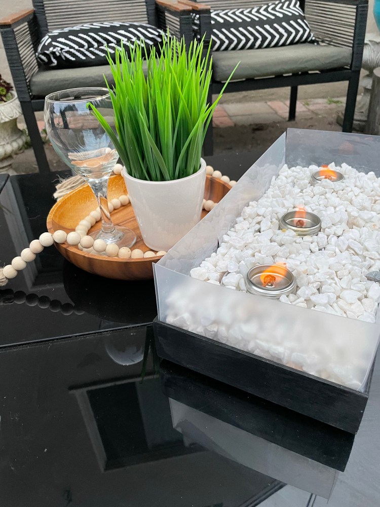 Step 4: Place one Dollar Tree Handi Heat in each section of the tray. Cover Handi Heats with the four Dollar Tree White Marble Rocks.